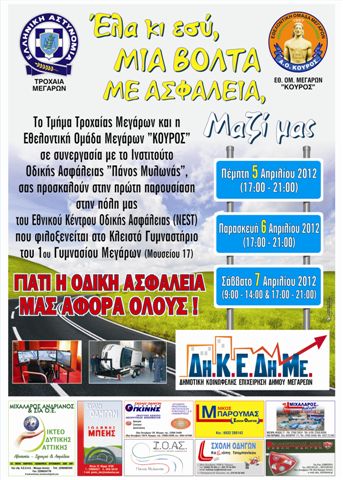 Σεμινάριο οδικής ασφάλειας με ελεύθερη είσοδο διοργανώνεται στις 5 με 7 Απριλίου στα Μέγαρα, στην αίθουσα του κλειστού γυμναστηρίου του 1ου Γυμνασίου Μεγάρων.