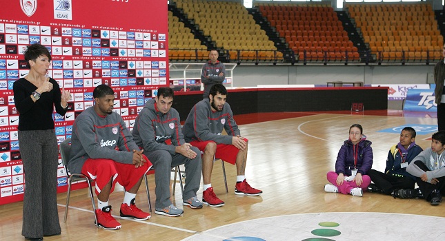 «Είμαστε πολύ χαρούμενοι σήμερα που υποδεχόμαστε εδώ το ειδικό σχολείο κωφών και βαρήκοων Αργυρούπολης στο πλαίσιο του προγράμματος One Team και του προγράμματος Κοινωνικής Ευθύνης του Ολυμπιακού. Όπως γνωρίζετε όλοι αυτό το πρόγραμμα προσπαθεί μέσα από τη συμμετοχή των παιδιών στο μπάσκετ και σε εκδηλώσεις, προσπαθούμε να τους κάνουμε καλύτερους ανθρώπους και αθλητές, να κοινωνικοποιηθούν. Το πρόγραμμα αυτό τρέχει εδώ και ενάμιση χρόνο, ξεκίνησε πέρσι το καλοκαίρι και για μας είναι κάτι πολύ σημαντικό. Η προσφορά στο κοινωνικό σύνολο για τον Ολυμπιακό, για τους ιδιοκτήτες, για τους παίκτες, για τα στελέχη και για τους φιλάθλους του Ολυμπιακού είναι κάτι πολύ σημαντικό για μας. Στο παρελθόν έχουμε κάνει πολλές ενέργειες και θα συνεχίσουμε. Το πρόγραμμα αυτό μας δίνει την ευκαιρία να έρθουμε πιο κοντά σ’ αυτά τα παιδιά και τα παιδιά να συμμετέχουν στην οικογένεια του Ολυμπιακού γιατί πλέον αποτελούν μέλος της οικογένειας του Ολυμπιακού, ώστε σιγά, σιγά να μπορέσουν να βελτιώσουν τις αθλητικές του ικανότητες αλλά και να βελτιωθούν ως άνθρωποι».