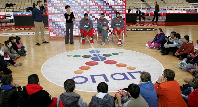 Οι μικροί είχαν την ευκαιρία να φωτογραφηθούν με τους αγαπημένους τους παίκτες των πρωταθλητών Ευρώπης και Ελλάδας, να ανταλλάξουν ευχές και στη συνέχεια να… ανακρίνουν τον Γιώργο Μπαρτζώκα, τον πρεσβευτή του Ολυμπιακού στο πρόγραμμα Κάιλ Χάινς και τον Γιώργο Πρίντεζη.