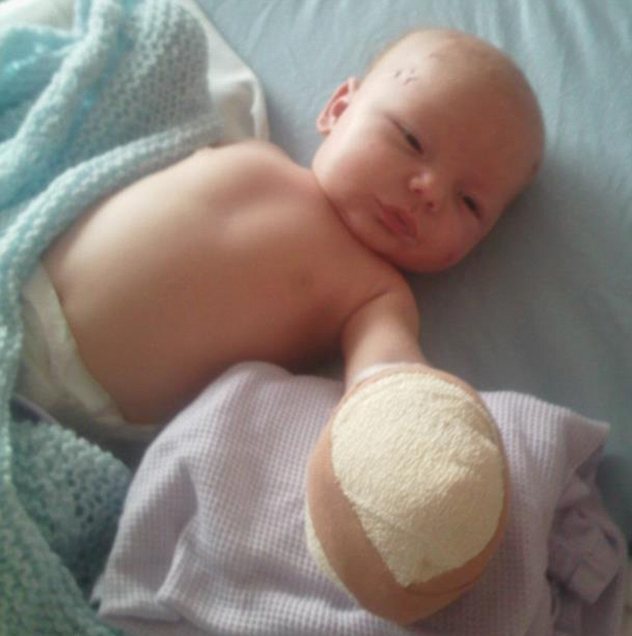 Οι γιατροί επανακόλλησαν το δάχτυλο στο αριστερό χέρι του μικρού Denny, του έκαναν τέσσερα ράμματα στο κεφάλι του και μερικά στο πηγούνι.