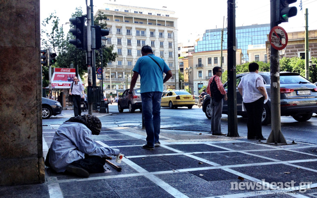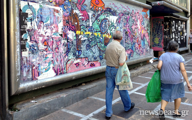 Όμως, η Αθήνα δεν είναι μόνον η πλατεία Συνάγματος, το Κολωνάκι και τα γύρω στενά. Στη Σταδίου για παράδειγμα, τα πράγματα αποκτούν διαφορετική όψη: Την πραγματική. Την Αθήνα με τα χιλιάδες «λουκέτα» και τους ζητιάνους.
