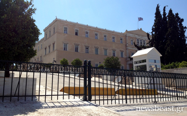 Ακόμη και στο Σύνταγμα όμως υπάρχει μια άλλη όψη της πρωτεύουσας αφού στη Βουλή, υπάρχουν ακόμη τα κιγκλιδώματα που προκαλούν αρνητική εντύπωση.