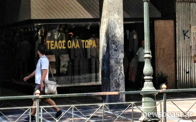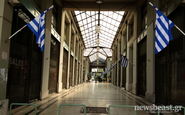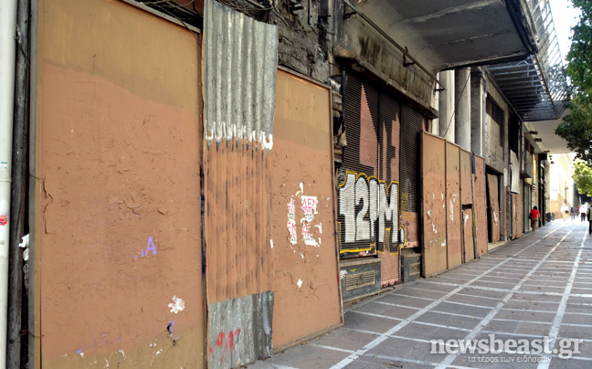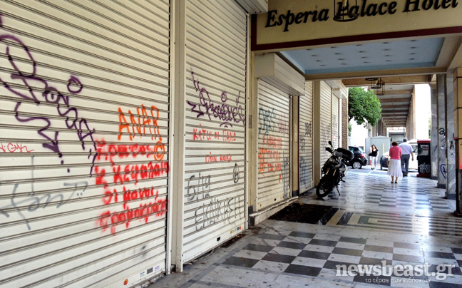 Είναι χαρακτηριστικό ότι δεκάδες κλειστά μαγαζιά, πολλές φορές το ένα δίπλα στο άλλο, εμπορικές στοές «φαντάσματα», κλειστά ξενοδοχεία, συνθήματα, βρωμιά, εξαθλιωμένοι επαίτες που ζητιανεύουν για λίγα λεπτά του ευρώ.