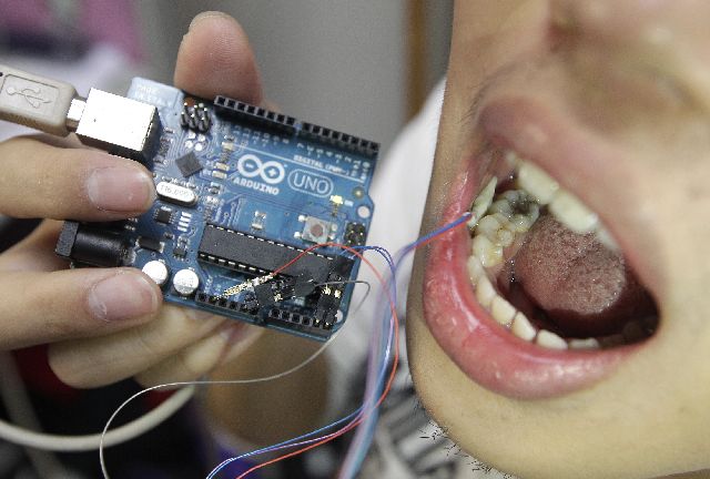 Ο ερευνητής Kelvin Li επιδεικνύει με ικανοποίηση το «Έξυπνο Δόντι» στο Πανεπιστήμιο της Ταϊβάν στην Ταϊπέι. Το «Έξυπνο Δόντι», με μήκος περίπου ένα εκατοστό, είναι ένας αισθητήρας σχεδιασμένος ώστε να ενσωματώνεται σε ένα τεχνητό δόντι στην οδοντοστοιχία, με σκοπό να καταγράφει τις καθημερινές συνήθειες του ανθρώπου: η μάσηση της τροφής, το κάπνισμα, η κατανάλωση ποτών, ο βήχας, η υπερκατανάλωση φαγητού.