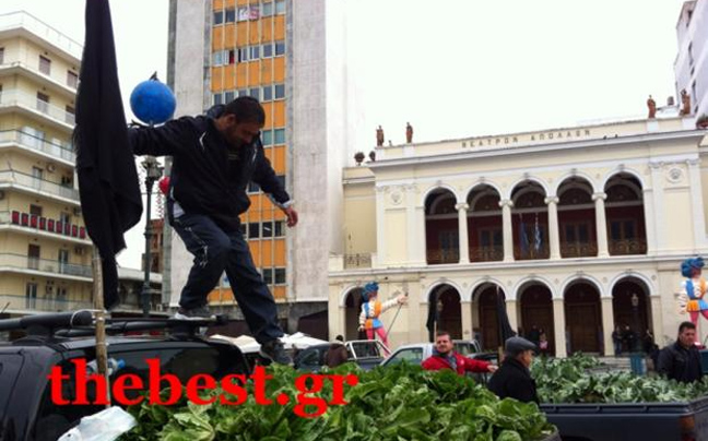 Οι αγρότες σταμάτησαν με τα αυτοκίνητά τους στην πλατεία Γεωργίου, όπου μοίρασαν δωρεάν φρούτα και λαχανικά στους πολίτες. Η αστυνομία είχε λάβει έκτακτα μέτρα, για την αποφυγή τυχόν απροόπτων, ενώ κατά την διάρκεια της εισόδου των αγροτών στο κέντρο της πόλης, δημιουργήθηκε μεγάλο κυκλοφοριακό πρόβλημα.
