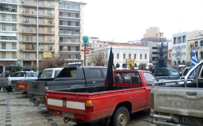 Δείτε φωτογραφίες από την Πάτρα. Στο κέντρο της Πάτρας μετέφεραν σήμερα τις κινητοποιήσεις τους οι αγρότες της Αχαΐας. Ειδικότερα, αγρότες που βρίσκονταν στα μπλόκα της Κάτω Αχαΐας και του Κουρλαμπά, επιβιβάστηκαν λίγο μετά τις 12.00 το μεσημέρι σε αγροτικά αυτοκίνητα και με κομβόι μπήκαν στο κέντρο της πόλης.