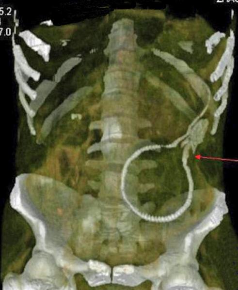 Οι χειρουργοί αφαίρεσαν τελικά από τον ασθενή ένα χέλι μήκους 50 εκατοστών και βάρους άνω του μισού κιλού!