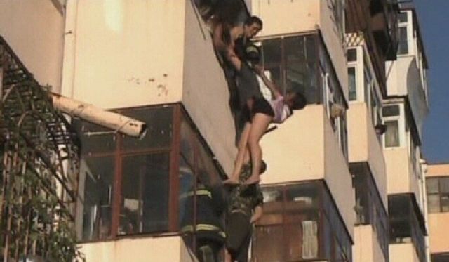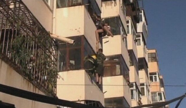 Σύμφωνα με τα τοπικά μέσα ενημέρωσης, η νεαρή γυναίκα καθόταν στο παράθυρο και κάποια στιγμή γλίστρησε κι έπεσε έξω αλλά για καλή της τύχη ο φίλος της, που ήταν κοντά της, πρόλαβε και την άρπαξε ενώ εκείνη έπεφτε στο κενό.