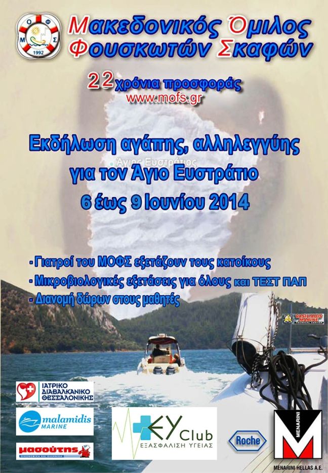 Εκδήλωση αγάπης και αλληλεγγύης προγραμματίζει από τις 6-9 Ιουνίου ο Μακεδονικός όμιλος Φουσκωτών Σκαφών (ΜΟΦΣ) για τους κατοίκους του Αγίου Ευστρατίου.