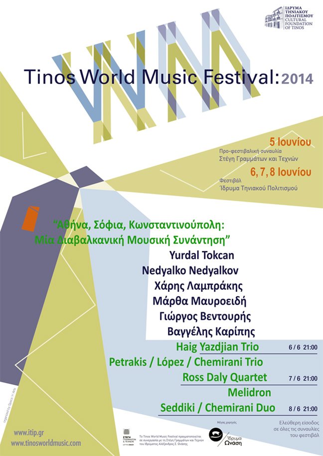 Σε συνέχεια του επιτυχημένου Tinos Jazz Festival, το Ίδρυμα Τηνιακού Πολιτισμού εγκαινίασε πέρυσι το Tinos World Music Festival, με σκοπό να φέρει το ελληνικό κοινό σε επαφή με σημαντικούς μουσικούς από τα Βαλκάνια και την Ανατολική Μεσόγειο, αλλά και να εντάξει το νησί της Τήνου σε ένα ευρύτερο διαπολιτισμικό δίκτυο.