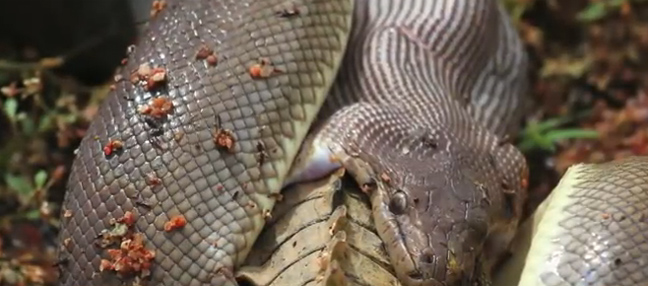 Πάντως, όσο χρονοβόρα κι αν ήταν η… πάλη, τόσο γρήγορα το τεράστιο φίδι κατάπιε τον κροκόδειλο. Το «γεύμα» του κράτησε μόνο 15 λεπτά.