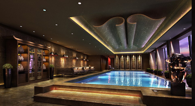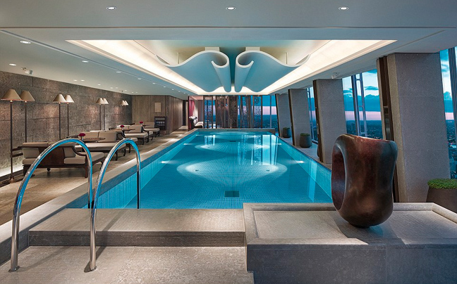 Την πισίνα σχεδίασε ο αρχιτέκτονας εσωτερικών χώρων, από το Χονγκ Κονγκ, Andre Fu και έχει θερμοκρασία 24 βαθμούς Κελσίου. Οι ένοικοι του πολυτελούς ξενοδοχείου μπορούν να απολαμβάνουν τις βουτιές τους από τις έξι το πρωί μέχρι αργά το βράδυ ενώ και οι εξωτερικοί επισκέπτες του ξενοδοχείου έχουν την δυνατότητα να την επισκέπτονται, μόνο για να την θαυμάσουν, μετά τις 8.30 το βράδυ, με την προϋπόθεση ότι καταναλώνουν κάτι στο μπαρ.