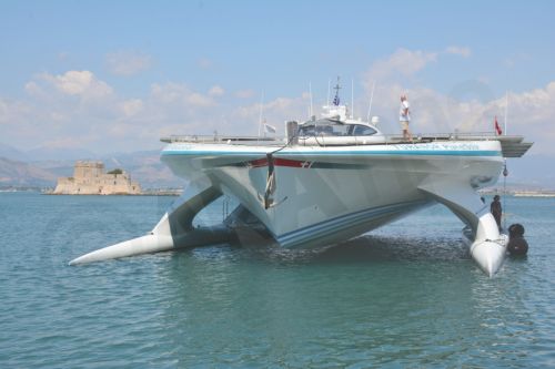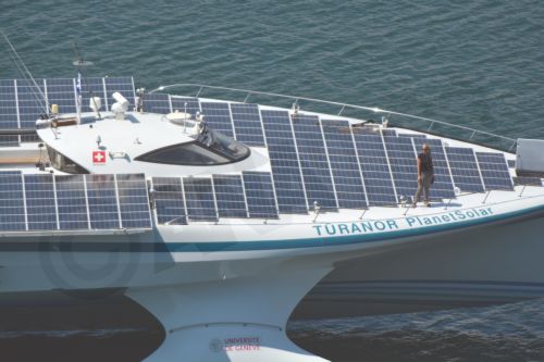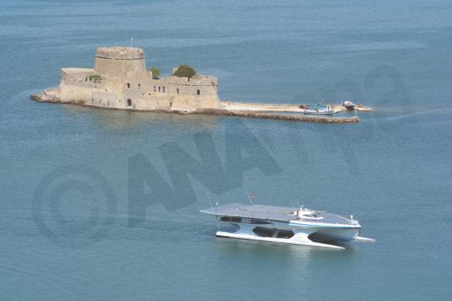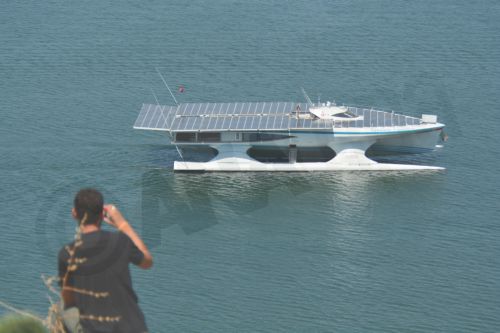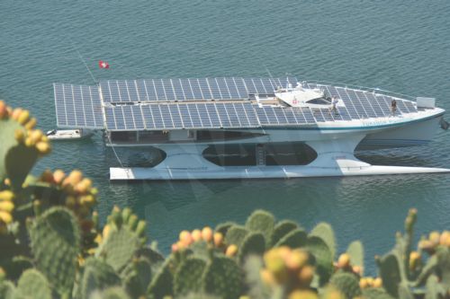 Το Καταμαράν Planet Solar με σημαία Ελβετίας που κινείται με ηλιακή ενέργεια κατέπλευσε σήμερα στο λιμάνι του Ναυπλίου.