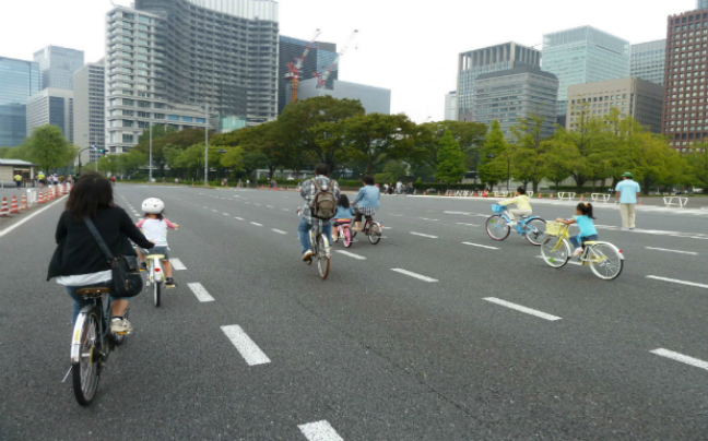 Οι ποδηλάτες του Τόκιο χρησιμοποιούν ποδήλατα με σταθερό πάτημα, εφοδιασμένα με καλάθια για τα ψώνια και καθίσματα για ένα ή δυο μικρά παιδιά.