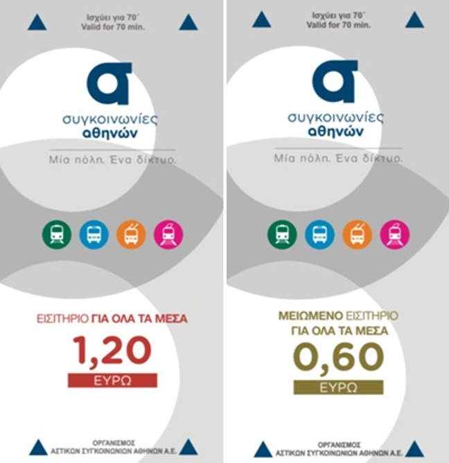o Η τιμή του ενιαίου εισιτηρίου που ισχύει για μετακινήσεις με όλα τα μέσα, από 1,40 ευρώ (μειωμένο 0,70 ευρώ),σε 1,20 ευρώ (μειωμένο 0,60 ευρώ). Το νέο ενιαίο εισιτήριο ισχύει για 70 λεπτά από την επικύρωσή του, δεν ισχύει στις λεωφορειακές γραμμές express του Αεροδρομίου και την ειδική λεωφορειακή γραμμή express Χ80.