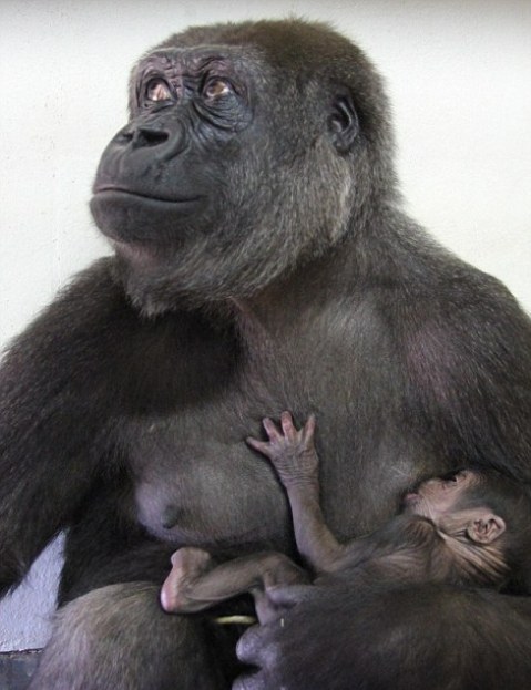 Η Mbeli, ένας θηλυκός γορίλλας που γεννήθηκε στο ζωολογικό κήπο το 2003, έφερε στον κόσμο ένα αρσενικό γοριλλάκι.