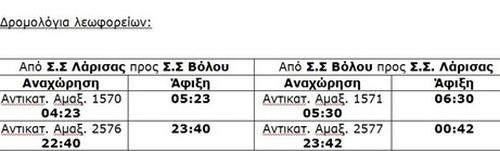 Με λεωφορεία θα εξυπηρετούνται από σήμερα οι επιβάτες της ΤΡΑΙΝΟΣΕ από τη Λάρισα με προορισμό τον Βόλο, και αντίστροφα, λόγω εργασιών αναβάθμισης της σιδηροδρομικής υποδομής.