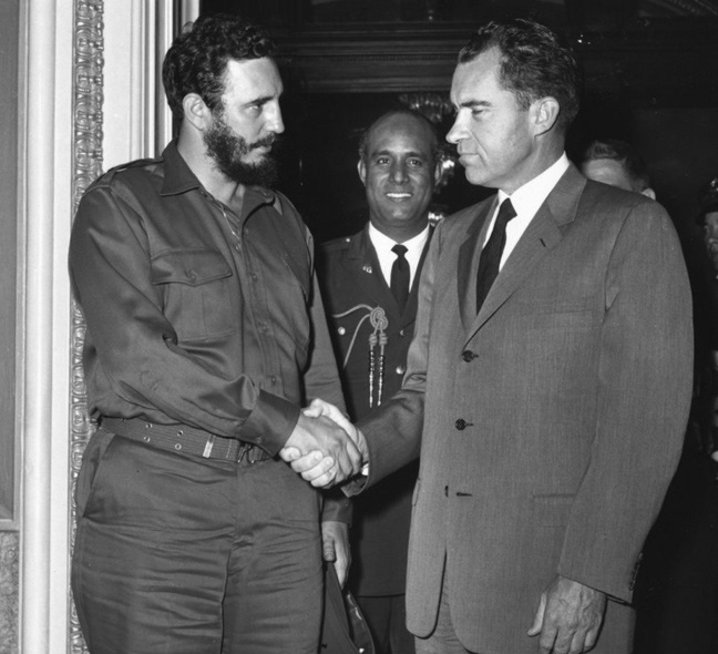 1959: Ο Κάστρο εισβάλει με τους 9.000 αντάρτες του στην Αβάνα, αναγκάζοντας τον Batista να φύγει άρον-άρον. Ο Κάστρο αναλαμβάνει ηγετικά καθήκοντα και τον Απρίλιο της ίδιας χρονιάς συναντιέται με τον αντιπρόεδρο των ΗΠΑ, Ρίτσαρντ Νίξον, στο περιθώριο της ανεπίσημης επίσκεψής του στην Ουάσιγκτον. Ο Νίξον παρατηρεί μετά τη συνάντηση ότι η Ουάσιγκτον δεν έχει άλλη επιλογή παρά να «προσανατολίσει» τον κομμουνιστή ηγέτη «στη σωστή κατεύθυνση».