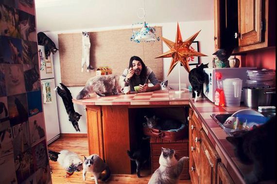 Η Γαλλοκαναδή φωτογράφος Andreanne Lupien τα τελευταία χρόνια απαθανατίζει γατόφιλους μαζί με τους μικρούς φίλους τους. Πρόσφατα αποφάσισε να αξιοποιήσει περισσότερο το υλικό της προσθέτοντας ψηφιακή επεξεργασία. Έτσι, ενώ στην πραγματικότητα οι φωτογραφιζόμενοι έχουν μόνο μία ή δύο γάτες, στις τελικές εικόνες εμφανίζονται με... αγέλη!