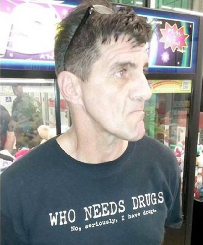 Ο Balmer λοιπόν συνελήφθη για κατοχή ναρκωτικών όταν αποφάσισαν να τον ψάξουν επειδή φορούσε μπλούζα που έγραφε: «ΠΟΙΟΣ ΧΡΕΙΑΖΕΤΑΙ ΝΑΡΚΩΤΙΚΑ; Όχι σοβαρά, έχω πάνω μου» («Who needs drugs? No, seriously, I have drugs»). Το αστείο στην υπόθεση είναι ότι ο 50χρονος πράγματι είχε στην κατοχή του ναρκωτικές ουσίες!