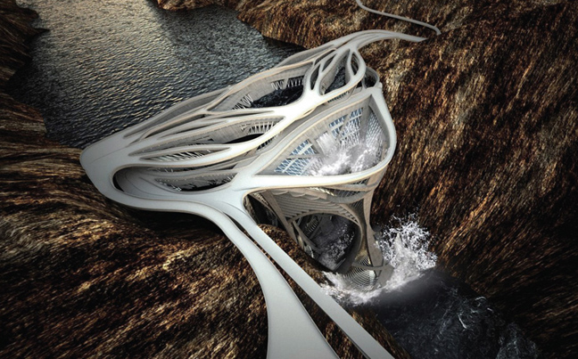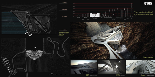 Ο σχεδιαστής Yheu-Shen Chua έδωσε στην εμβληματική κατασκευή μια αναπάντεχη φουτουριστική όψη που θα μάγευε σίγουρα τα πλήθη αν έβλεπε ποτέ το φως της ημέρας. Την ώρα που το θεόρατο αμερικανικό φράγμα διαθέτει σήμερα μια πλατφόρμα-παρατηρητήριο και έναν εκθεσιακό χώρο, που συνδέονται με μια γέφυρα, ο φουτουριστικός σχεδιασμός βάλθηκε να αναμορφώσει τις δομές συγχωνεύοντάς τες σε μια ενιαία κάθετη υπερδομή.