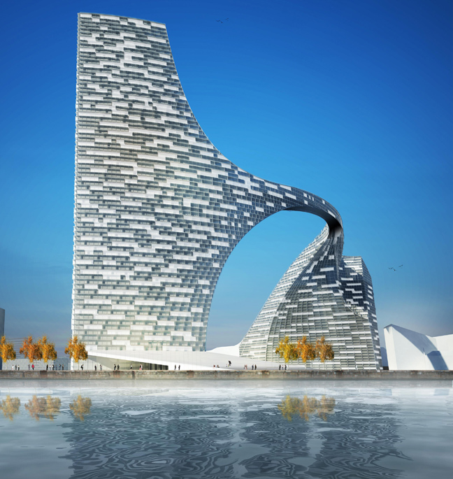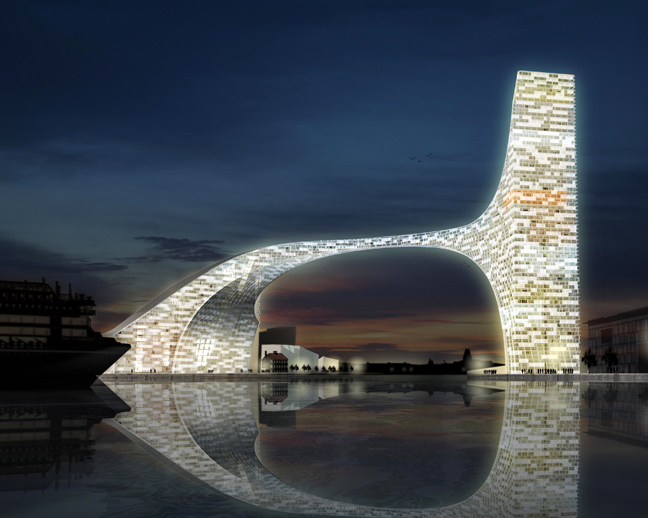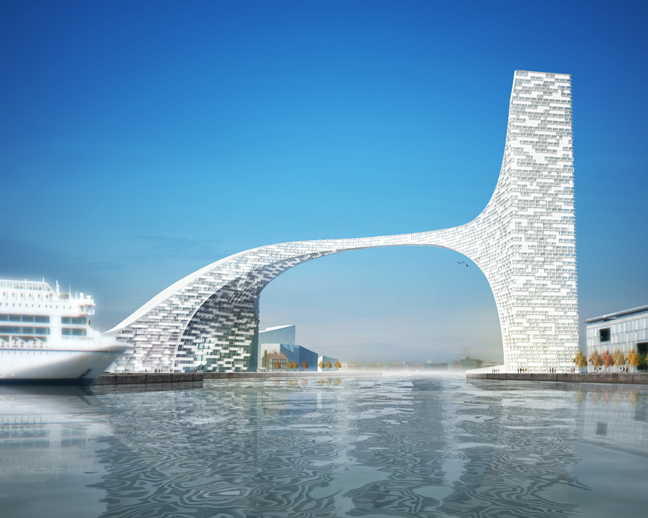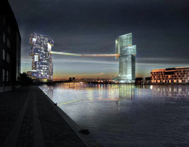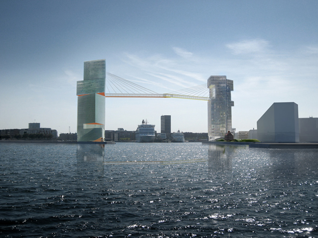 Πρώτο βραβείο σε σχετικό διαγωνισμό για τον σχεδιασμό νέας μπούκας για το λιμάνι της πρωτεύουσας της Δανίας, η δουλειά του γραφείου Steven Holl Architects παρουσιάσει δύο πύργους, ο καθένας με τη δική του κρεμαστή γέφυρα, οι οποίες συναντιούνται κάπου στη μέση.