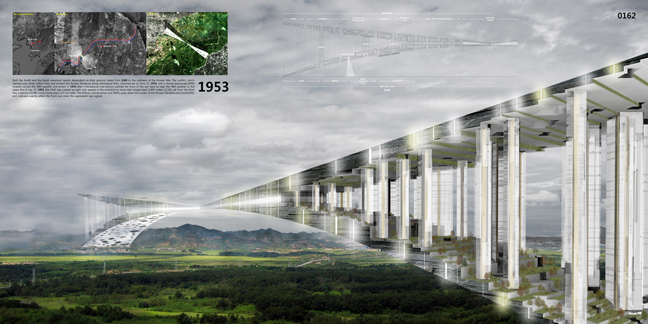 Με βάση λοιπόν την οικολογική διατήρηση της αποστρατικοποιημένης ζώνης, οι κορεάτες αρχιτέκτονες Kim Sehyeon, Lee Jung Boram και Choung Yongsu πρότειναν μια γέφυρα στους αιθέρες που θα συνδέει μεν τη Βόρεια με τη Νότια Κορέα, αν και θα το κάνει με διακριτικό για την άγρια ζωή τρόπο!