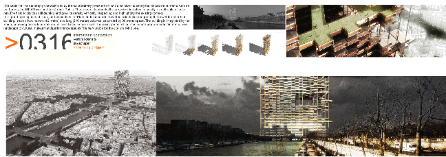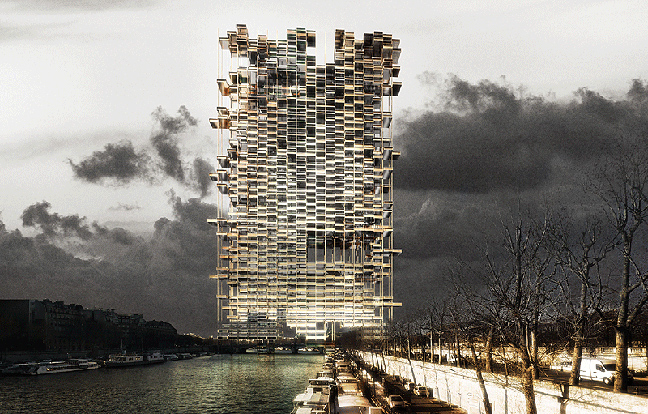 Λίγο γέφυρα, λίγο ουρανοξύστης, το φουτουριστικό κτίσμα θέλησε να κοσμήσει τον παρισινό Σηκουάνα, αντλώντας έμπνευση από τις ιστορικές κατοικήσιμες γέφυρες του ευρωπαϊκού παρελθόντος.