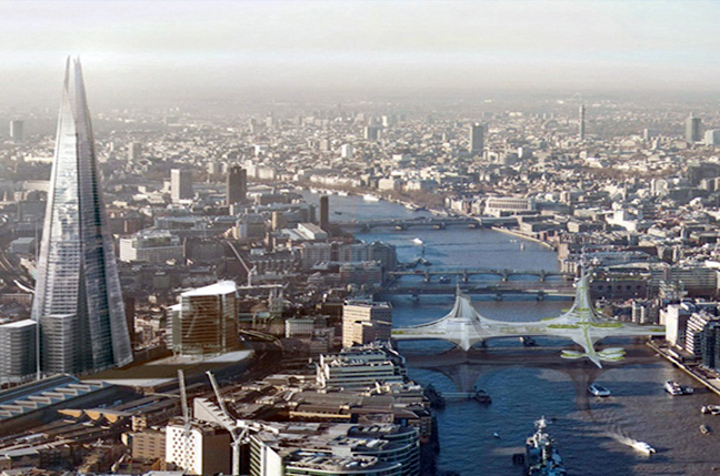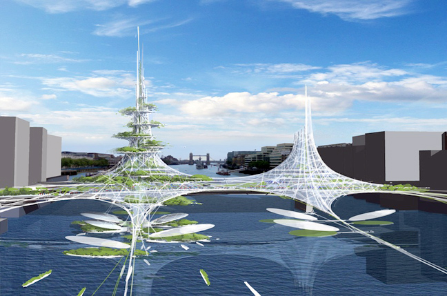 Η πολύπαθη London Bridge έχει υποστεί αρκετά face-lift όλα αυτά τα χρόνια της ζωής της και κάποια στιγμή θα ξαναχρειαστεί μια ανανέωση. Και βέβαια το όραμα του 21ου αιώνα για την ιστορικότατη λονδρέζικη γέφυρα δεν θα μπορούσε να μην ήταν μια βιώσιμη λύση αστικής ζωής, σπείρες με ηλιακά πάνελ δηλαδή που ξεδιπλώνονται ψηλά στον αέρα φιλοξενώντας κάθετους κήπους!
