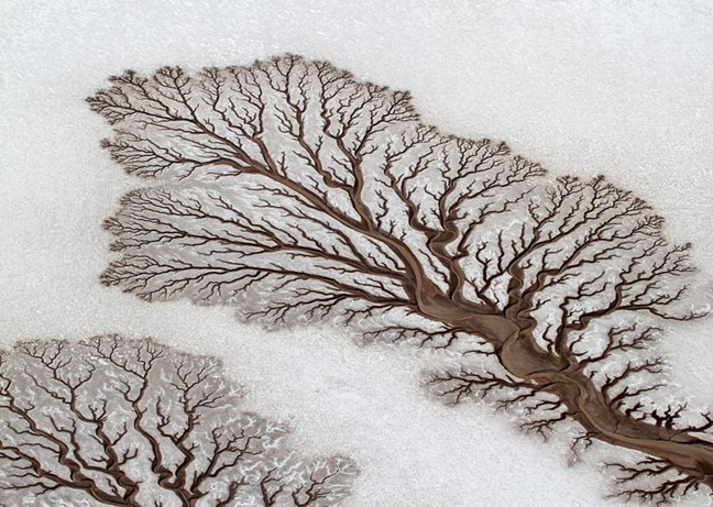 Μοιάζει με πίνακα ζωγραφικής ή ακόμα και με το δημιούργημα κάποιου με πολύ φαντασία στο Photoshop. Δεν είναι όμως, είναι απλά ένας ωραίας πίνακας της φύσης στο Μεξικό. Την εναέρια φωτογραφία τράβηξε ο Adrian Franco και επιλέχθηκε στις 9 Απριλίου του 2012 ως η «Φωτογραφία της μέρας» από το National Geographic. Σε αυτή μπορούμε να δούμε τα απίστευτα μοτίβα που έχει δημιουργήσει η αποξηραμένη κοίτη του ποταμού στην καλιφορνέζικη έρημο Baja του Μεξικό!