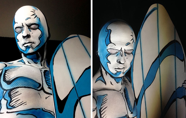 Είτε το πιστεύεις είτε όχι η φωτογραφία που ακολουθεί δεν είναι από τη σελίδα κάποιου comic. Μπορεί να είναι εμπνευσμένη από τον σούπερ ήρωα Silver Surfer της Marvel, αλλά είναι το εντυπωσιακό αποτέλεσμα του body painting που έκανε η μακιγιέρ του Χόλιγουντ Cris Alex.