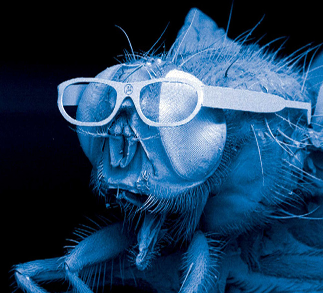 Όσοι έχουμε κατοικίδια έχουμε μπει συχνά στον πειρασμό να βάλουμε μια φωτογραφία τους στο Photoshop και να τους προσθέσουμε ό,τι αξεσουάρ βάζει ο νους μας: από στέμματα και φιόγκους μέχρι καπέλα και γυαλιά. Αν πιστεύετε ότι κάτι τέτοιο έγινε και με τη συγκεκριμένη φωτογραφία, γελιέστε. Η κατασκευαστική εταιρεία Micreon GmbH έστειλε τη φωτογραφία της μύγας με τα γυαλιά σε έναν επιστημονικό διαγωνισμό φωτογραφιών το 2005 στη Γερμανία. Στόχος να προβληθεί μια νέα τεχνική της εταιρείας που αφορούσε τη λεπτομερή κατασκευή μικροσκοπικών αντικειμένων, σε πολύ μικρή κλίμακα, με τη μέθοδο του λέιζερ. Το έντομο ήταν νεκρό την ώρα της φωτογράφισης.