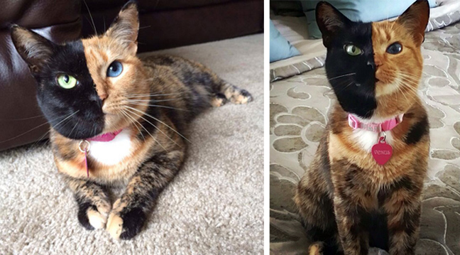 Η Venus είναι μια ξεχωριστή γάτα. Το κεφάλι της είναι δίχρωμο: μισό καφέ και μισό μαύρο. Αλλά η ιδιαιτερότητά της δεν σταματάει εδώ. Η Venus έχει ένα μάτι γαλάζιο και ένα πράσινο και μοιάζει σαν δημιούργημα της ψηφιακής τεχνολογίας. Δεν είναι όμως. Είναι αποτέλεσμα δύο εμβρύων που συγχωνεύτηκαν στα πρώιμα στάδια της ανάπτυξής του με το τελικό αποτέλεσμα να παρουσιάζει χρωμοσωματικές ανωμαλίες. Το συμπαθές και ιδιαίτερο τετράποδο έχει γίνει η βασίλισσα του ίντερνετ.
