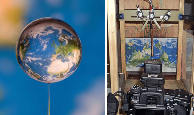 Αυτή θα μπορούσε να αποτελεί μια διαφήμιση για έναν πρακτικό οδηγό που θα σας κάνει ειδικούς στην τέχνη του Photoshop. Όσο και να μην μπορείτε να το πιστέψετε αυτή η φωτογραφία είναι αληθινή. Την τράβηξε ο Markus Reugels, ο φωτογράφος που καταφέρνει να αιχμαλωτίζει σταγόνες νερού μπροστά από χάρτες της γης, της σελήνης, αλλά και παγκόσμιους χάρτες και να μεταμορφώνει υγρές σφαίρες σε όμορφους κόσμους!