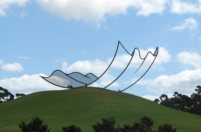 Το μάτι ξεγελιέται. Κοιτάς τη φωτογραφία και νομίζεις ότι είναι μια ζωγραφιά, αν όχι φτιαγμένη με τον κλασικό τρόπο τότε σίγουρα μέσα από φίλτρα του υπολογιστή. Άραγε αυτό να σκέφτηκε ο γλύπτης Neil Dawson όταν έφτιαξε το δημιούργημά του το 1994 σε λόφο της Αυστραλίας; Ποιος μπορεί να μπει στο μυαλό ενός καλλιτέχνη, όμως, που έκανε το λόφο να μοιάζει βγαλμένο μέσα από σελίδες κινουμένων σχεδίων. Η τεράστια μεταλλική κουβέρτα μοιάζει έτοιμη να καλύψει τη γη και όσοι συγκεντρώνονται εκεί σίγουρα δεν χάνουν την ευκαιρία για μια φωτογραφία!