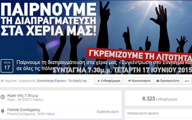 «Κάθε βήμα πίσω στις παράλογες απαιτήσεις των δανειστών, σημαίνει πολλά βήματα πίσω στη δημοκρατία» τονίζεται στο κάλεσμα μέσω Facebook.