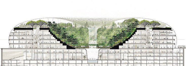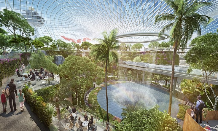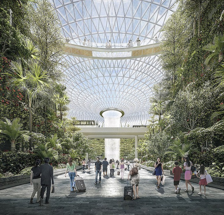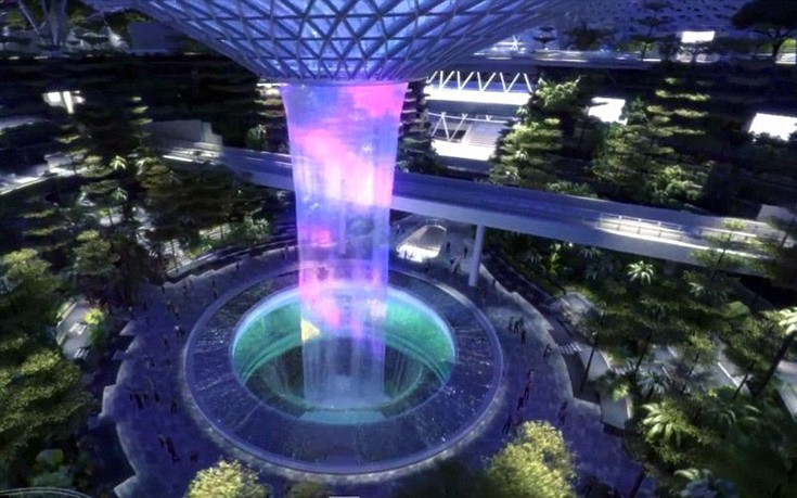 Το θεαματικό αεροδρόμιο σκοπεύει να δημιουργήσει έναν εσωτερικό καταρράκτη ύψους 40 μέτρων, ένα εσωτερικό δάσος, ακόμη και… μονοπάτια πεζοπορίας μέσα στον τερματικό σταθμό, με τις εργασίες κατασκευής να υπολογίζεται ότι θα ολοκληρωθούν μέσα στα επόμενα τρία χρόνια.
