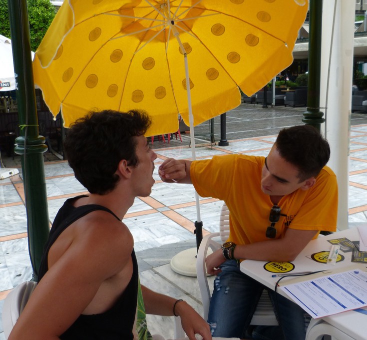 2. Δίνει δείγμα σάλιου του, με μία μπατονέτα, για να ελεγχθεί πιθανή συμβατότητα.