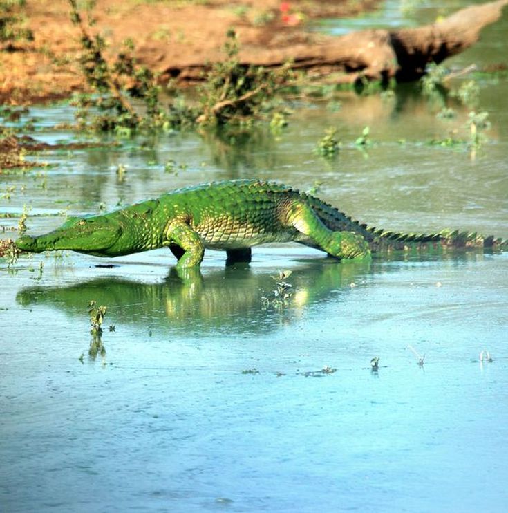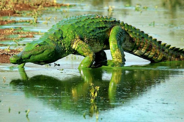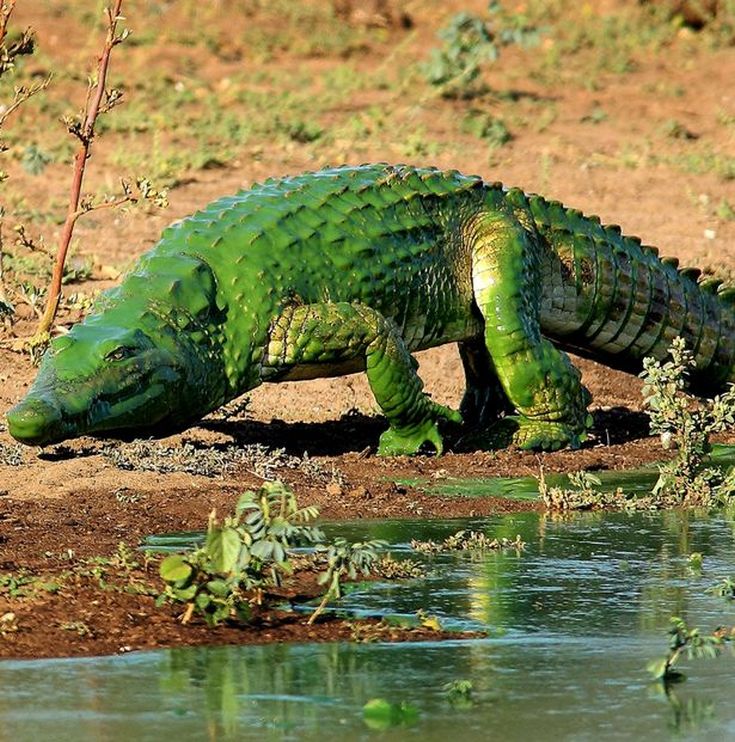 Το φολιδωτό δέρμα του μοιάζει να λάμπει από τη φωτεινή πράσινη μπογιά που καλύπτει τον συγκεκριμένο κροκόδειλο. Μοιάζει σαν να βγήκε από τις σελίδες κόμικς, θυμίζοντας μας τον ανυπέρβλητο Hulk! Ο νοτιοαφρικανός Armand Grobler είναι αυτός που τράβηξε τις εν λόγω φωτογραφίες, από το Kruger National Park.