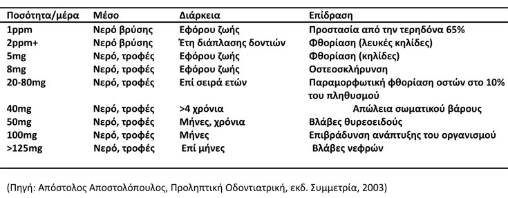 Ειδικότερα, «σύμφωνα με τον Παγκόσμιο Οργανισμό Υγείας, το φθόριο είναι ένα από τα 14 στοιχεία που θεωρούνται απαραίτητα για την κανονική ανάπτυξη και λειτουργία του οργανισμού. Αποτελεί το πλέον αποτελεσματικό μέσο που διαθέτει η οδοντιατρική για την πρόληψη της τερηδόνας. Γι’ αυτό εξάλλου λέμε ότι οι θεραπείες με φθόριο πρέπει να ξεκινούν ήδη από την ηλικία των δύο ετών, τότε που έχουν βγει τα νεογιλά δόντια», τονίζει η ειδικός. Η συχνότητα των τοπικών εφαρμογών εξαρτάται από τις ανάγκες του κάθε παιδιού, αλλά συνήθως συνίσταται η τοπική εφαρμογή ανά 6μηνο.