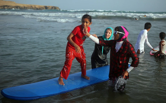 Πηγαίνουν ενάντια στο κύμα, μεταφορικά αλλά και κυριολεκτικά. Τα γενναία κορίτσια με τις πολύχρωμες σανίδες και τις αυστηρές αλλά χαρούμενες στολές τους, μένουν λίγο παραπάνω στο νερό της θάλασσας από ότι τα άλλα κορίτσια της πατρίδας τους.