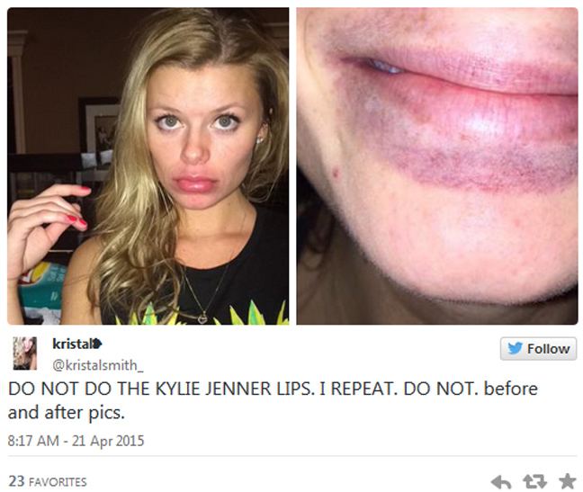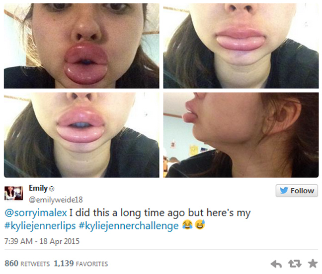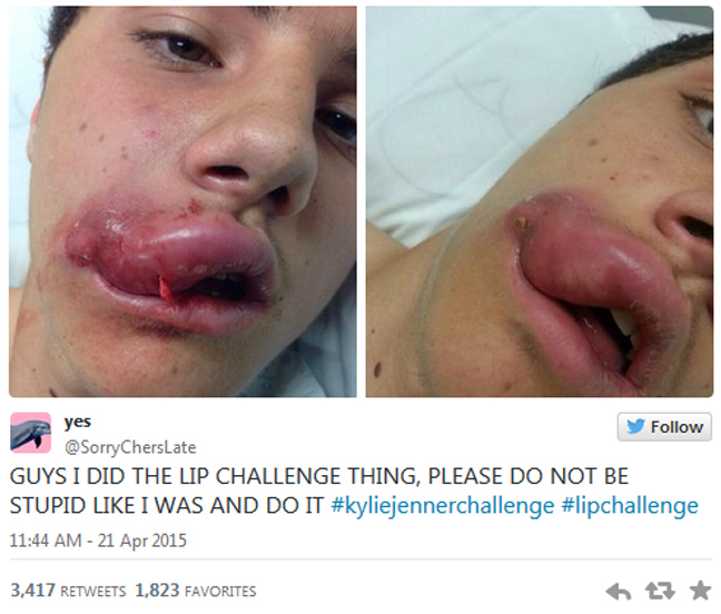 Γρήγορα το hashtag έγινε #KylieJennerChallengeGoneWrong δείχνοντας πως πολλοί έφηβοι είναι έτοιμοι να κάνουν τα πάντα για να κερδίσουν λίγη προσοχή στον κόσμο των social media.
