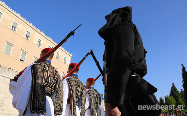 Αλλαγή Προεδρικής Φρουράς με ευζώνους να φορούν ρούχα του Πόντιου Αντάρτη - Δείτε φωτογραφίες. Εκδήλωση με αφορμή την Ημέρα Μνήμης για τη Γενοκτονία των Ποντίων, πραγματοποιείται αυτήν την ώρα στο Σύνταγμα.