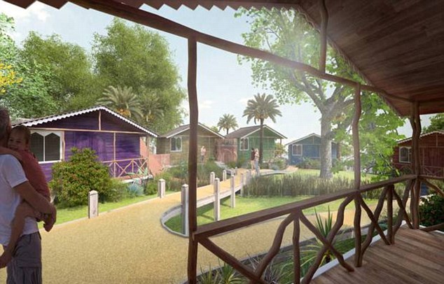 Οι καλύβες θα διαθέτουν ξύλινες βεράντες και θα βρίσκονται μέσα σε έναν μεγάλο κήπο γεμάτο με εξωτικά φυτά, κοντά στο χώρο φιλοξενίας των λιονταριών.