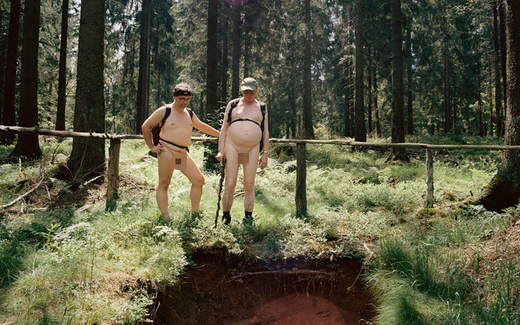 Ένα με τη φύση. «Die Nacktwandere» σημαίνει γυμνοί πεζοπόροι, όπως επέλεξε να τιτλοφορήσει τη σειρά του ο Ελβετός φωτογράφος Roshan Adhihetty. Κι όχι άδικα, μιας και περιγράφει άψογα το θέμα του. Όπως βλέπετε στις ακατάλληλες για ανηλίκους εικόνες, υπάρχουν περιπατητές που επιλέγουν να εξερευνήσουν τη φύση, όπως τους γέννησε η… φύση. Τελείως γυμνοί, απλά μόνο με τα απαραίτητα: ειδικά για περπάτημα, παπούτσια και φυσικά κάποιο σακίδιο με προμήθειες. Ο φωτογράφος, ακολούθησε μια τέτοια ομάδα γυμνών φυσιολατρών και κατέγραψε την χωρίς περιττούς «μεσάζοντες», όπως είναι τα ρούχα, σχέση τους με τη φύση. Πηγή: http://www.newsbeast.gr