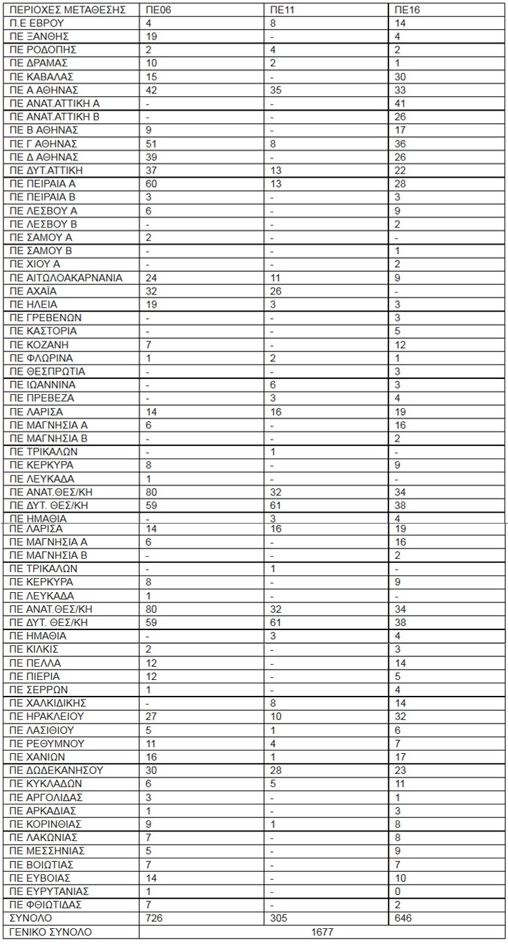 Όπως αναφέρεται οι οργανικές θέσεις ανά περιοχή και κλάδο συστήνονται από το σχολικό έτος 2015-16 για τις ανάγκες της εύρυθμης λειτουργίας των δημοτικών σχολείων, της λειτουργίας νέων ολοήμερων τμημάτων δημοτικών σχολείων που χαρακτηρίστηκαν ως ολοήμερα από το 2008 και στο εξής, και για τις ανάγκες της λειτουργίας των Ολοήμερων Δημοτικών Σχολείων με Ενιαίο Αναμορφωμένο Πρόγραμμα ( ΕΑΕΠ).