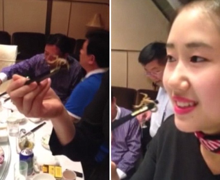 Το χειροκρότημα των θαμώνων κέρδισε μια σερβιτόρα στην Κίνα τρώγοντας μπροστά τους έναν ζωντανό σκορπιό.