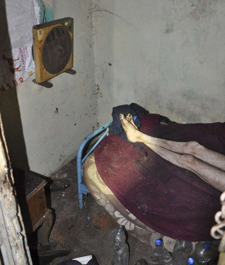 Ο 59χρονος, ο οποίος πάσχει από διανοητική υστέρηση, ήταν κλειδωμένος γυμνός σε ένα δωμάτιο εμβαδού 3 τετραγωνικών μέτρων, χωρίς στέγαστρο, δίπλα στο σπίτι της οικογένειας. Στον περιστερώνα αυτόν μοναδική επίπλωση ήταν ένα στρώμα, διάφορα μπουκάλια και δοχεία για να κάνει την ανάγκη του.