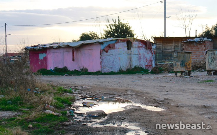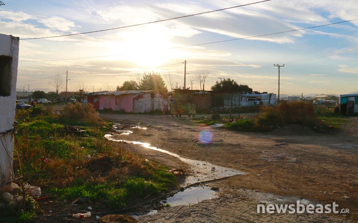 «Γελάνε άραγε οι τσιγγάνοι; Γελάνε και μάλιστα πολύ!», αναρωτιέμαι καθώς προχωράμε με το αυτοκίνητο προς τον καταυλισμό. Όχι φτιαχτά, πηγαία. Σπίτι τους μια παράγκα, βιαστικά στημένη πάνω σε έναν ξύλινο ή μεταλλικό σκελετό. Ένα νάιλον κολλημένο πάνω, προστατεύει από την υγρασία και το νερό της βροχής.