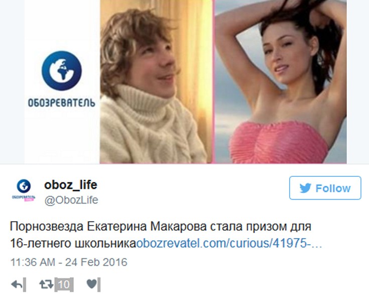 Αν έχεις τύχη διάβαινε. Κάπως έτσι, η τύχη χαμογέλασε και σε έναν 16χρονο ο οποίος είδε το όνομά του να βγαίνει πρώτο σε έναν διαγωνισμό, αλλά το έπαθλο ήταν μάλλον ακατάλληλο για… ανηλίκους. Ο νεαρός Ruslan Shchedrin, ήταν ο Νο 100.000 επισκέπτης μιας ιστοσελίδας με virtual όπλα για ένα συγκεκριμένο video game. Αν και περίμενε για δώρο έναν… εικονικό πύραυλο, ενημερώθηκε ότι το έπαθλο ήταν η διαμονή για ένα μήνα σε ξενοδοχείο της Μόσχας με τη διάσημη Ρωσίδα πορνοστάρ Ekaterina Makarova.